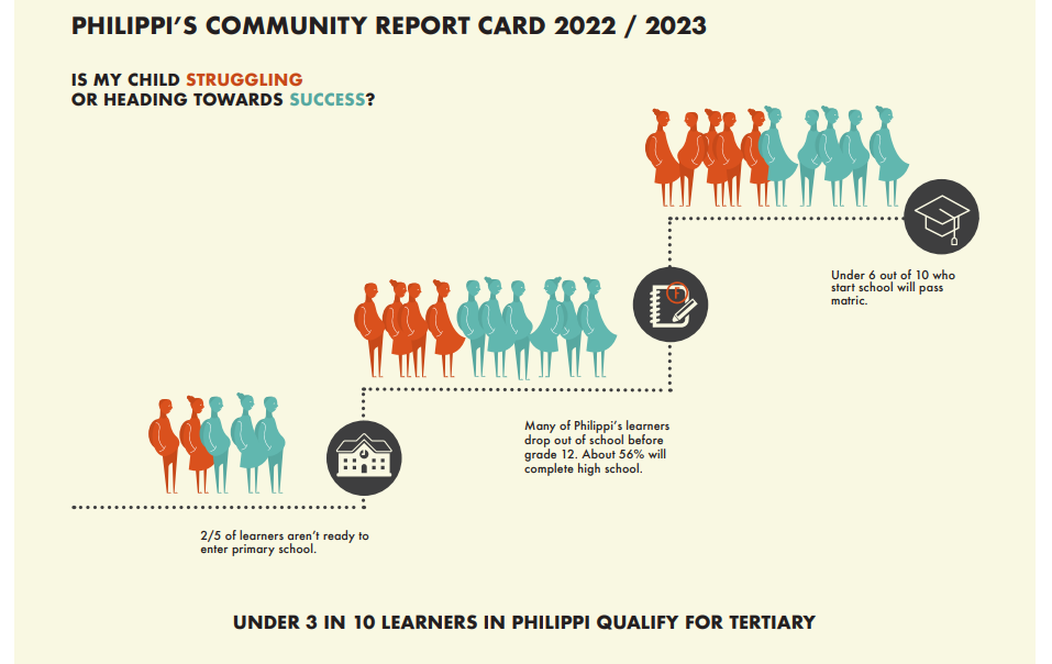 We have created a hub to connect people to the resources they need, we put together yearly reports to measure impact, and we create the annual Philippi’s Community Report Card which distills the collected data into the essential picture: how will my child succeed in school?